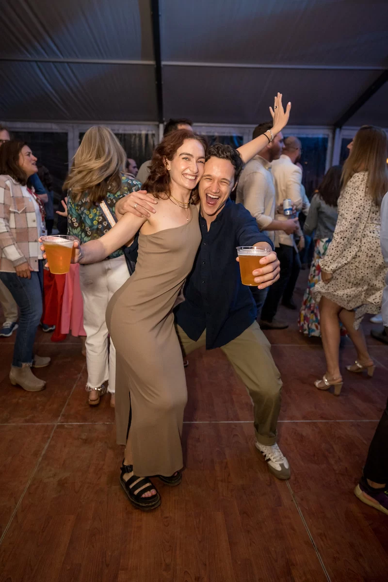 All are welcome at the Rosegold Saloon for drinks, snacks, and more dancing after the reception wraps up at 10:30. We will all hop in busses from the venue to the bar.